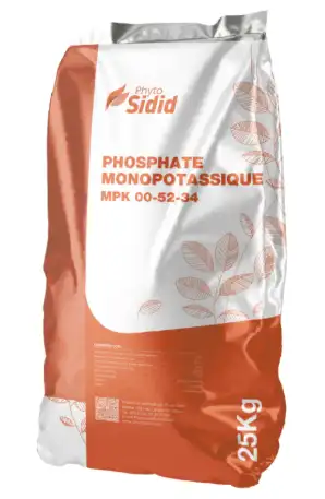 Anhydride Phosphorique (P2O5) soluble dans l’eau 52% Phosphore (P) : soluble dans l’eau 22,7% Oxyde de Potassium (K2O) : soluble dans l’eau 34% Potassium (K) : soluble dans l’eau 28,7%